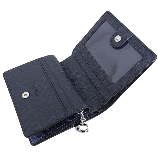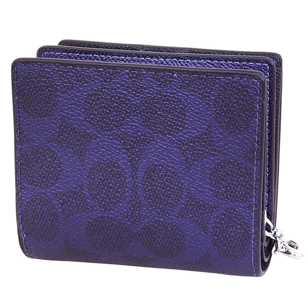 コーチ 財布 レディース 二つ折り財布 アウトレット ネイビー スナップウォレット シグネチャー キャンバス SNAP WLT MTLLC SIG CCL96SBLNV COACH